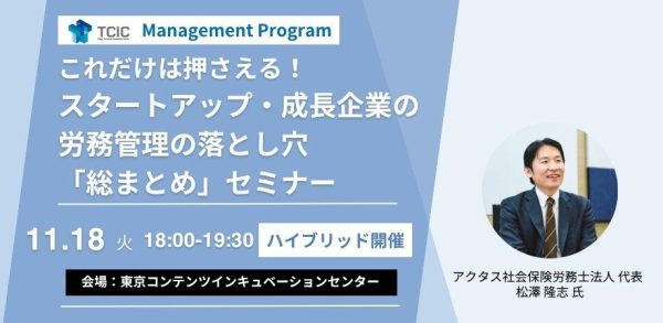 イベント名 :これだけは押さえる!スタートアップ・成長企業の労務管理の落とし穴「総まとめ」セミナー